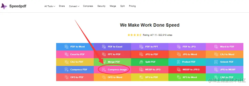 2、另外也可以使用speedpdf在线转换器,除了日常使用较多的文档转换外,图片压缩功能也是非常好用。打开这个在线转换工具后,选择compress image进入转换,也有免费试用哦,网页处右击可以翻译成中文页面。