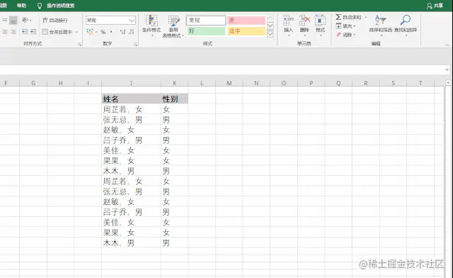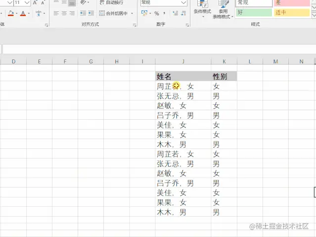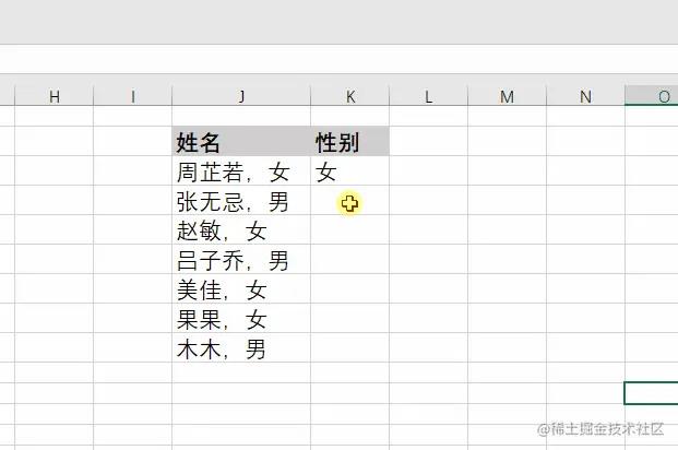 在性别列,先手动输入一个性别,然后按Ctrl+E即可快速批量拆分。