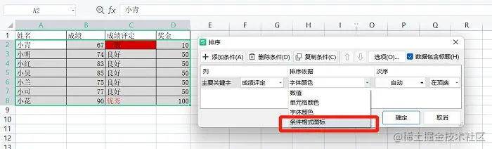 将【排序依据】选择【条件格式图标】即可,只不过这种排序方式比较少用到。