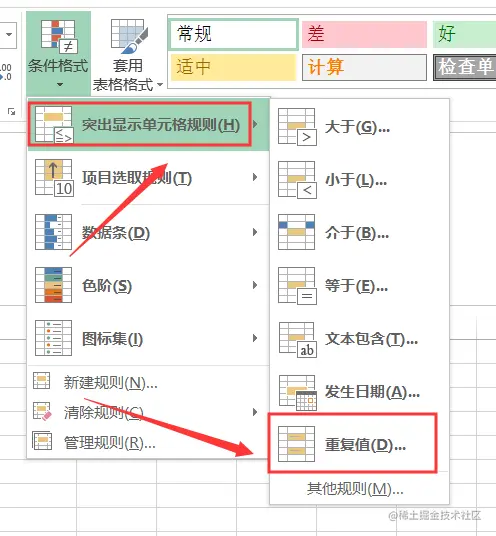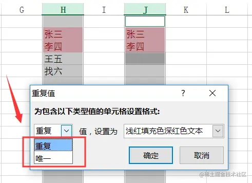 Excel中找出两列中相同的值 睡觉谁叫 2023-05-10 205 阅读1分钟 第一步:选中要对比的H列和J列 第二步:点击“开始”,然后点击“条件格式”并选择“突出显示单元格规则” 第三步: 选中“重复值” 第四步:在出现的选项框中有“重复”和“唯一”两个选项,我们可以将重复或者不重复的值给标注出来