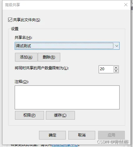 点击高级共享-》勾选共享此文件夹,选择共享用户的数量。