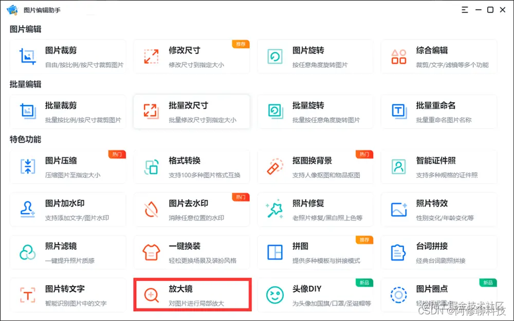 第一步 打开我们电脑上的软件,进入到软件的首页点击选择 【放大镜】 选项。