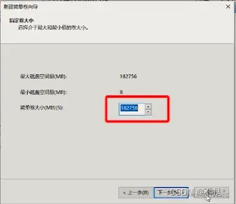 输入要分配的空间大小(1G=1024MB)点击下一步