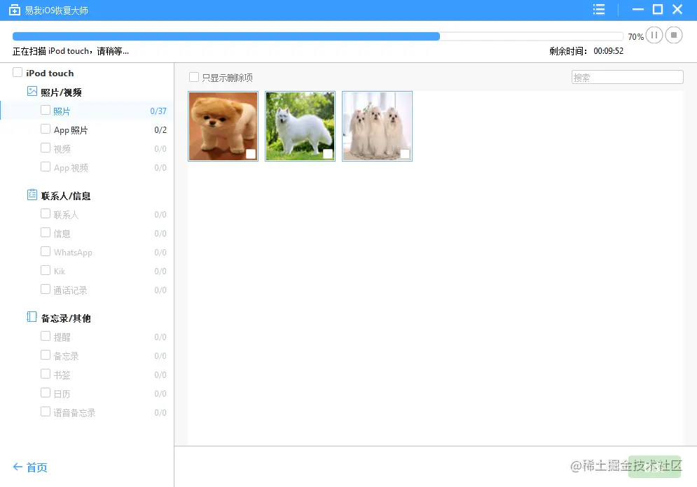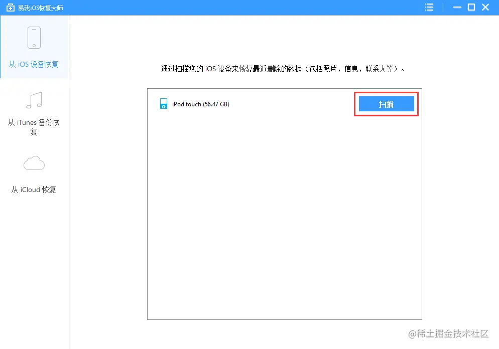 易我iOS恢复大师自动扫描iPhone,为您查找当前存在资料和所有丢失的数据。