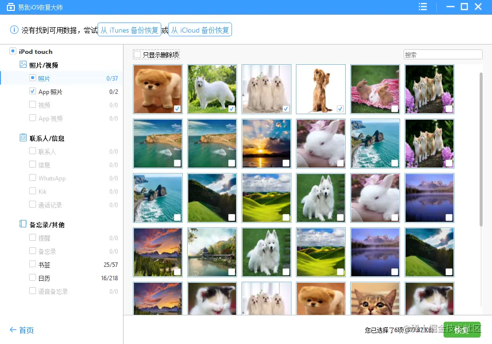 现在可以通过以上步骤开始恢复所有丢失的照片、视频、联系人、消息、Safari书签、便笺、语音备忘录和WhatsApp聊天记录等。