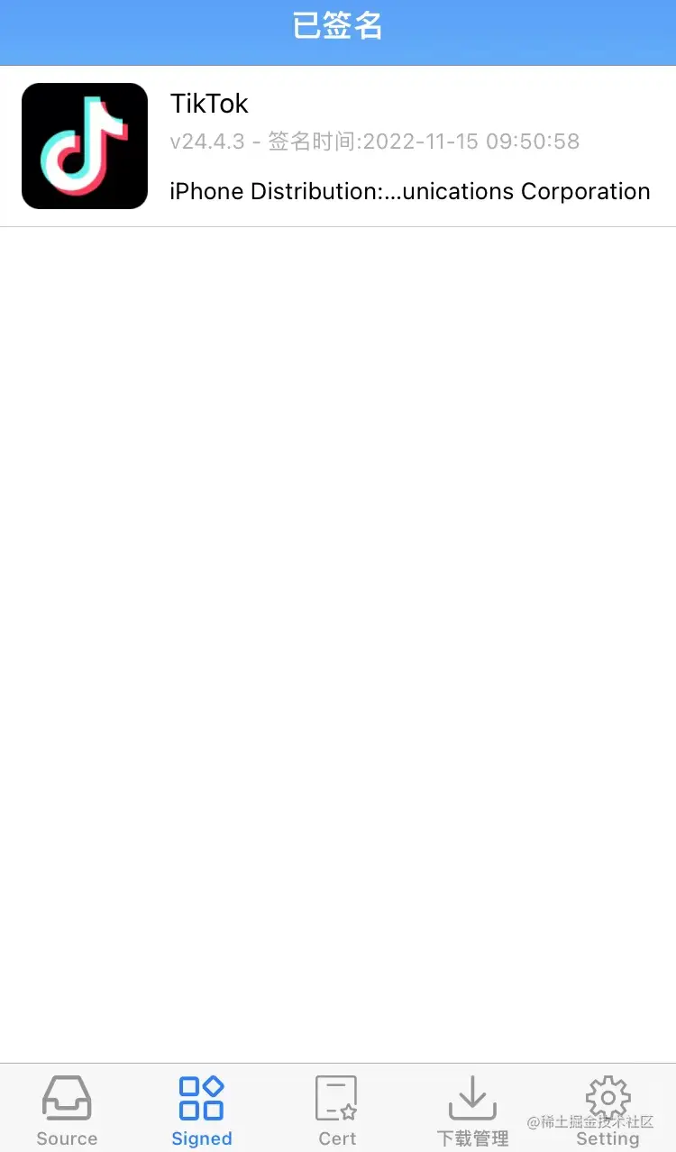 3,使用刚下载的''签名软件''对已下载的''Tiktok''进行''签名处理''。