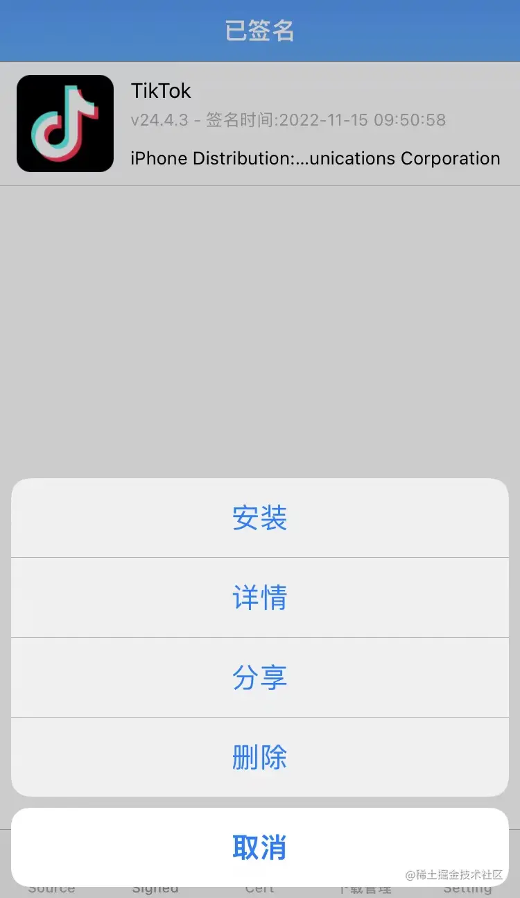 4,签名完成后,点击安装''Tiktok''。