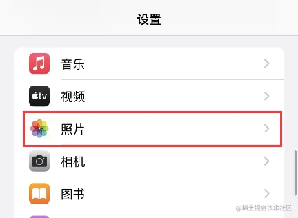 2、在iPhone苹果手机设置内,找到照片并点击进入;