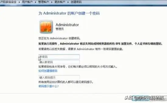 如何给电脑设置开机密码_都0202年了,还有人不会设置电脑系统开机密码吗?... 一眉师傅 2023-05-10 477 阅读1分钟 电脑开机密码设置方法 电脑开机密码设置方法: 1,首先,点击桌面左下角任务栏的“开始菜单”,选择“控制面板”选项进入。 2,进入控制面板界面后,点击“用户账户和家庭安全”选项。 3,然后选择“添加或删除用户账户”进入下一步。 4,点击“管理员”下一步。 5,点击界面左侧的“创建密码”选项。 6,现在就可以执行设置开机密码了。 关于电脑开机密码怎么设置的方法介绍到此就结束了。