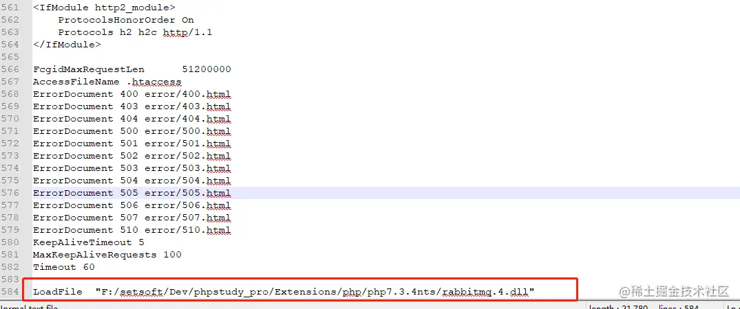 6. apache 修改http.conf 文件 添加 LoadFile "D:/XAMPP/php/rabbitmq.4.dll" (目录路径自行修改)。
