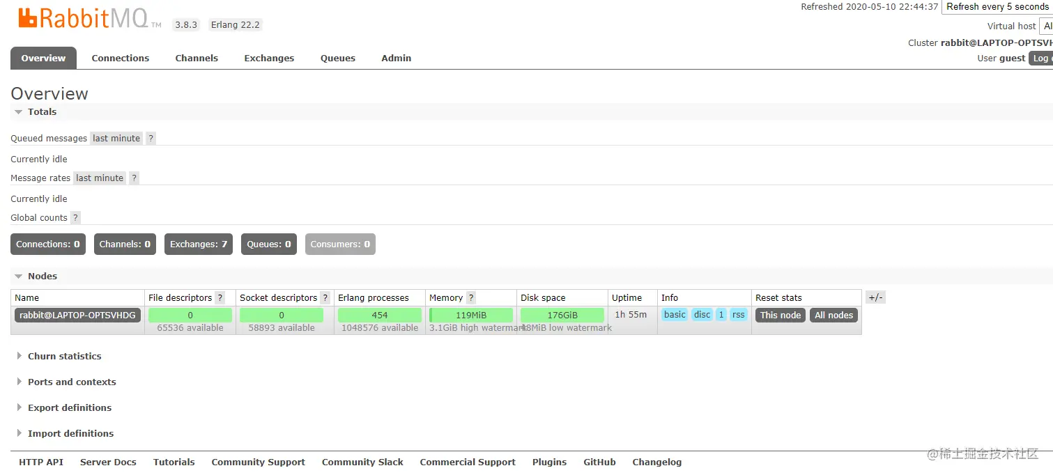 - 开启RabbitMQ Server,然后浏览器中输入127.0.0.1:15672