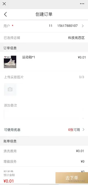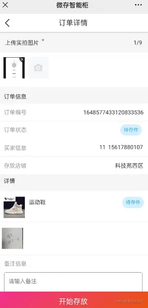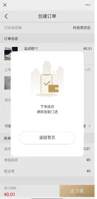 ①用户扫洗鞋码在公众号/小程序商城界面下单,下单后,系统提示用户存放至门店。如下图所示: