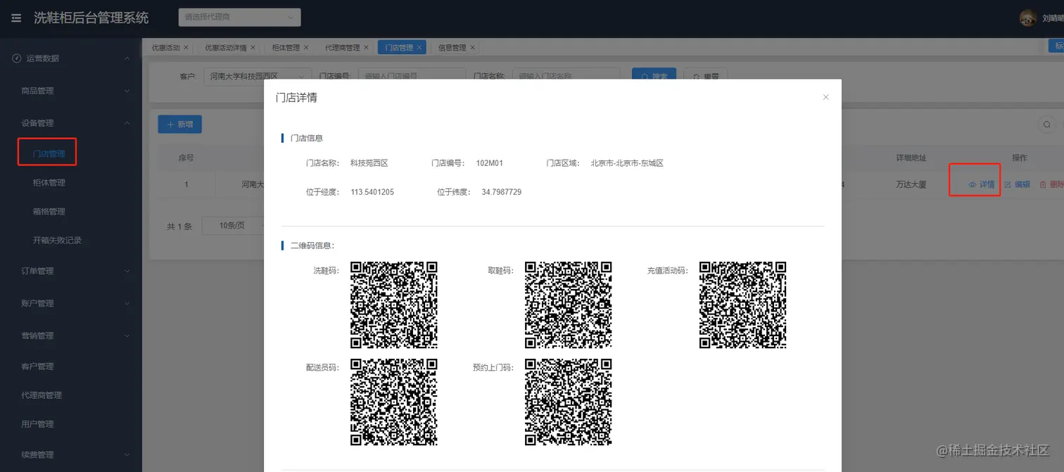 第三步:新增门店。在后台运营数据-设备管理-门店管理-点击新增,输入门店具体位置即可。