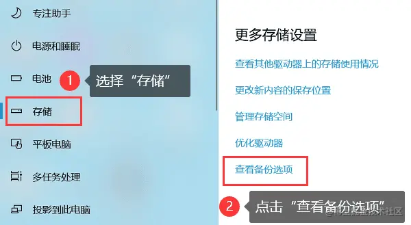 - 在右侧的菜单中选择 【查看备份选项】 ;