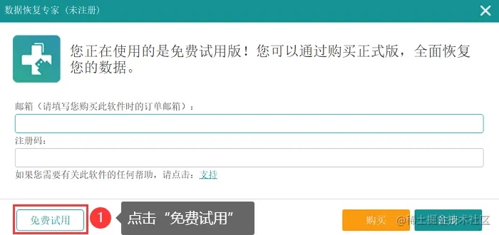 - 安装数据蛙恢复专家后,可先点击【免费试用】进行免费的扫描体验;