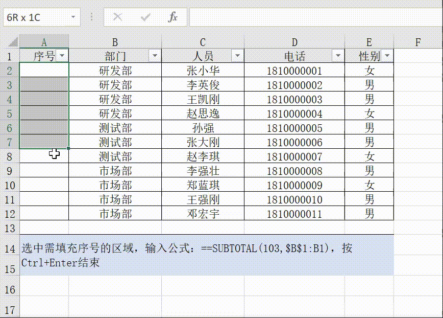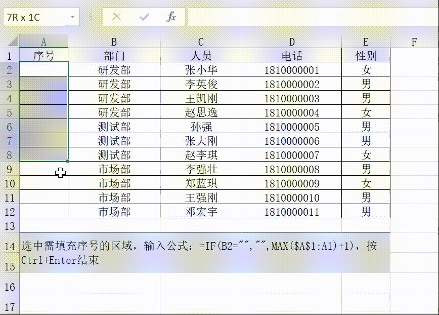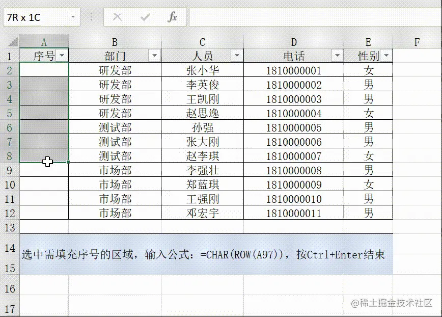 8、筛选行、删除行、插入空行、隐藏行后保持序号连续