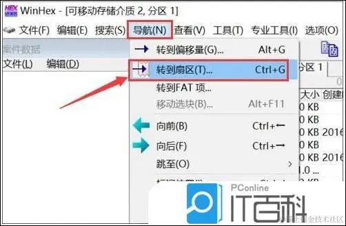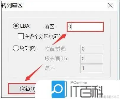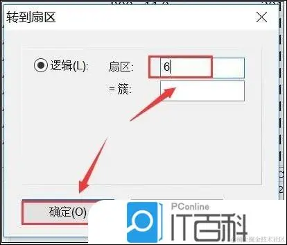 双击打开分区,点导航——跳转到扇区,输入6,跳转到6扇区。