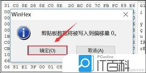 然后再跳转到0扇区,点编辑——剪贴板数据——写入——点击确定。