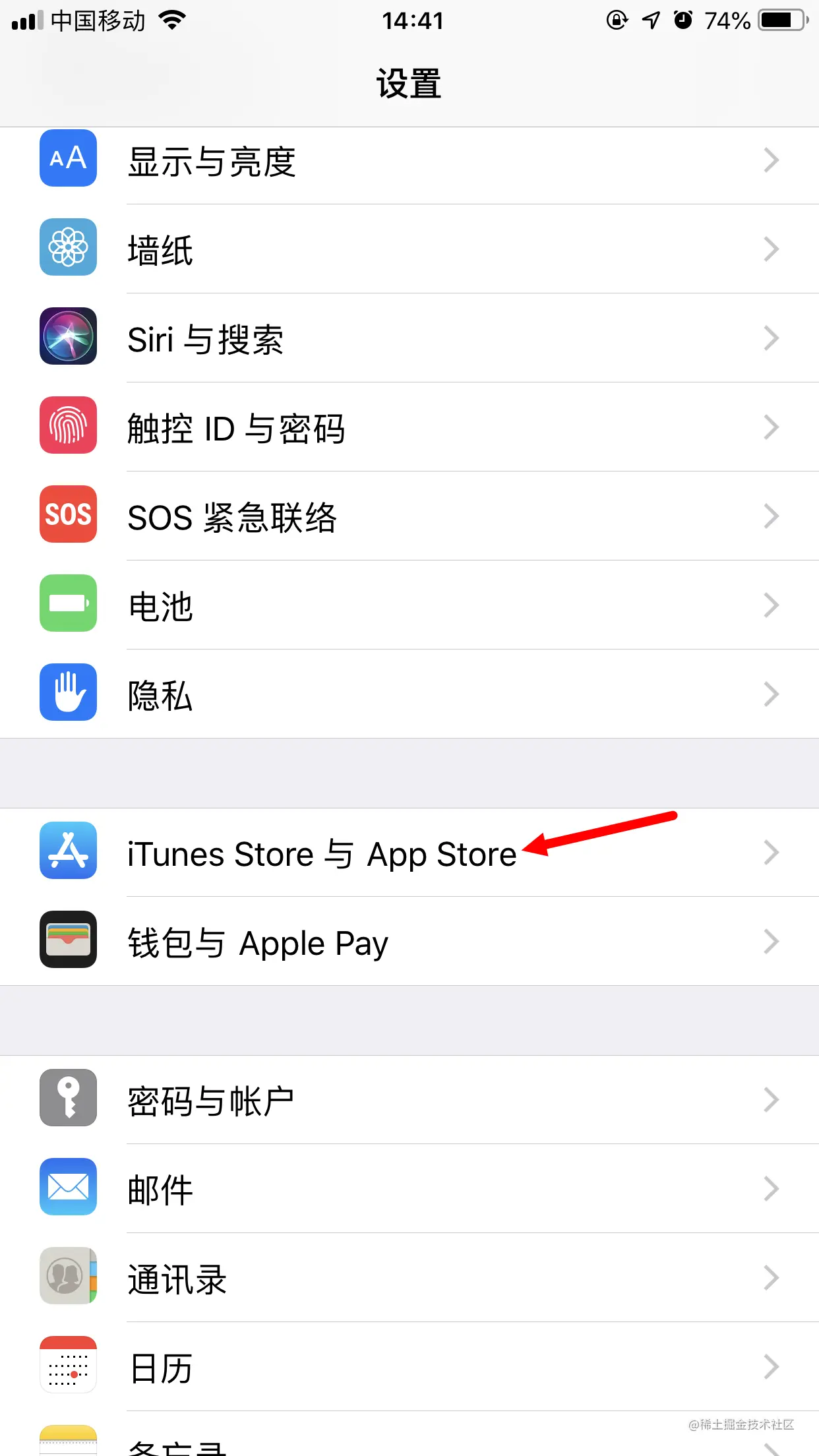 2、进入设置界面,点击iTunes Store 与App Store