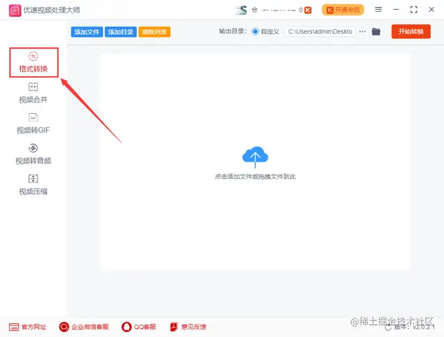 步骤1,先在电脑上下载“优速视频处理大师”工具,安装完成之后打开使用。工具左边可以看到有五个功能,点击最上面的【格式转换】进入下一步。