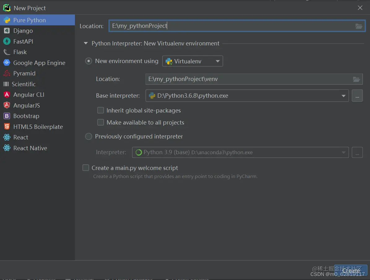 3.我们修改 Location (项目目录路径),自己起个名my_pythonProject