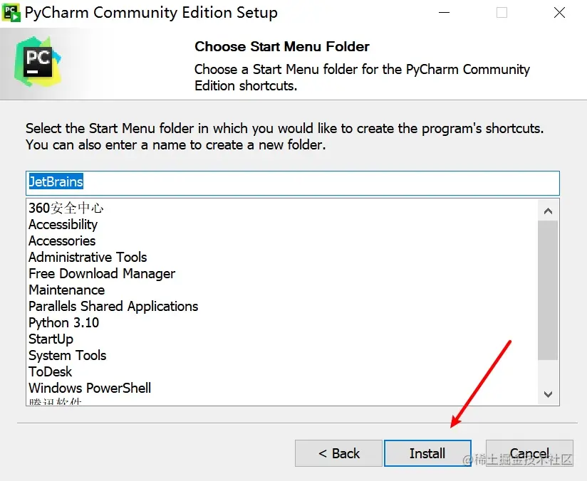4.进入 Choose Start Menu Folder 页面,直接点击 Install 进行安装