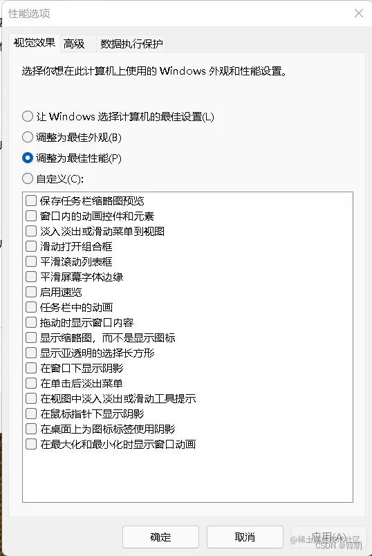 电脑卡顿反应慢解决办法 千空石纪 2023-05-10 640 阅读1分钟 第一种方法 磁盘清理 第二种方法 视觉效果调整为最佳性能 第三种方法 将保存新内容的地方都改为D盘,不放在c盘 第四种方法 优化磁盘和关闭每周磁盘优化计划 > 5.最后时刻优化清理电脑运行内存,建议使用电脑管家的加速球 > 6.多清理电脑上的垃圾文件,不玩的大型游戏,不用的大型软件要及时卸载掉 以上六种解决办法,全部设置后重启电脑再试一试,如果还是不行就建议重装系统