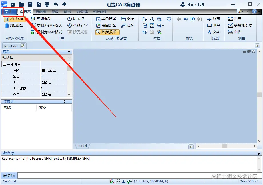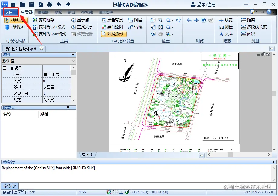 步骤三:PDF文件添加成功之后我们保存CAD格式之前,还可以对内容进行编辑,修改,这款工具不仅可以对文件的格式做转换,同时也是一款功能非常齐全且操作简单的CAD编辑器。做好编辑或者无语编辑的话点击右上角菜单栏的【文件】按钮。