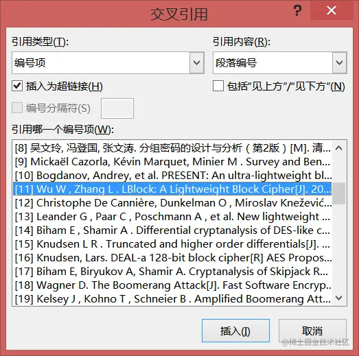 论文中的参考文献自动编号及在正文中自动更新 波多尔斯基 2023-05-10 437 阅读1分钟 开始——编号——定义新编号格式 插入——交叉引用 在参考文献更新之后,Ctrl+A 选中全文,点击右键——更新域 文章中的参考文献的编号就会随之改变。 来源:jingyan.baidu.com/article/066… 版权侵删