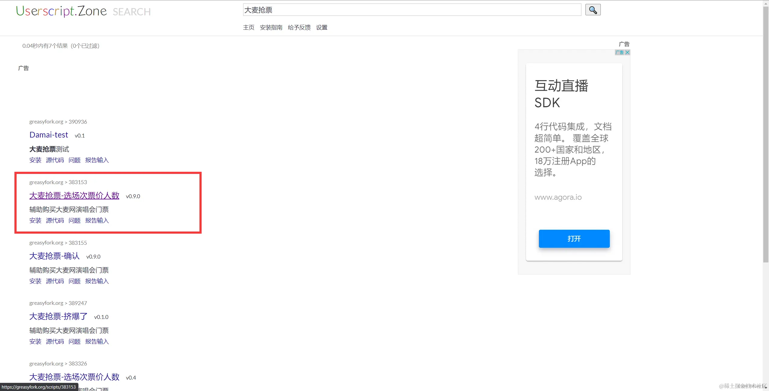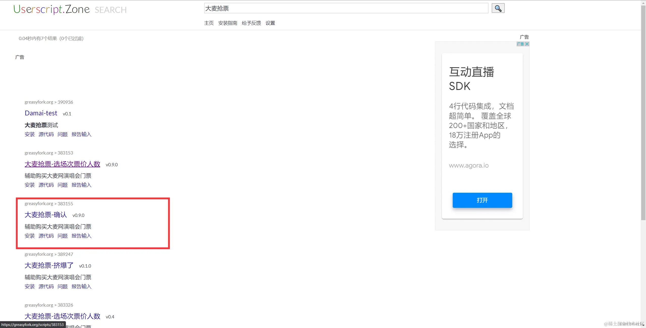 4.安装完脚本之后就可以登录大麦网,直接抢票。