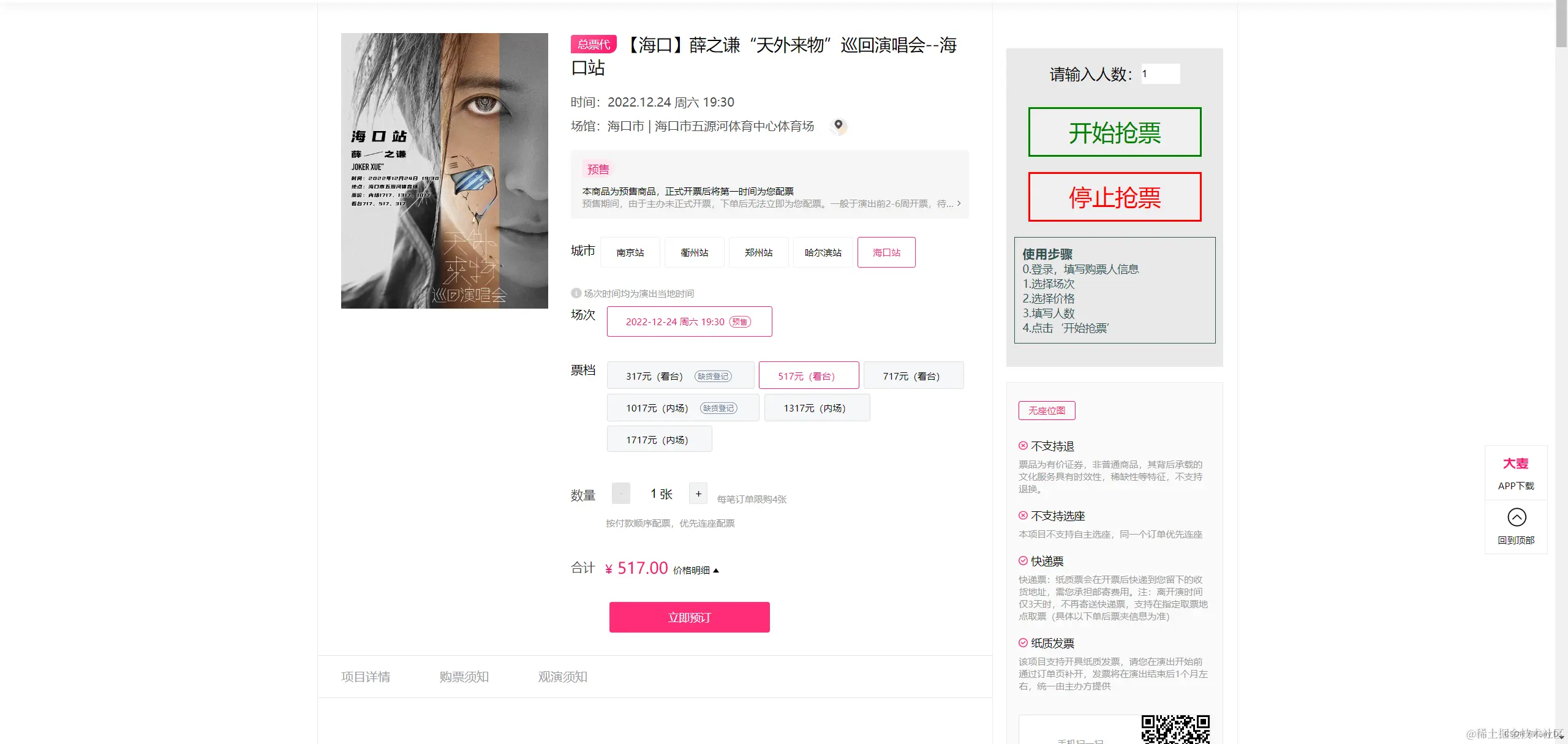随着疫情的放开,演唱会开始重新举办,抢不到票的可以借助脚本的力量!!