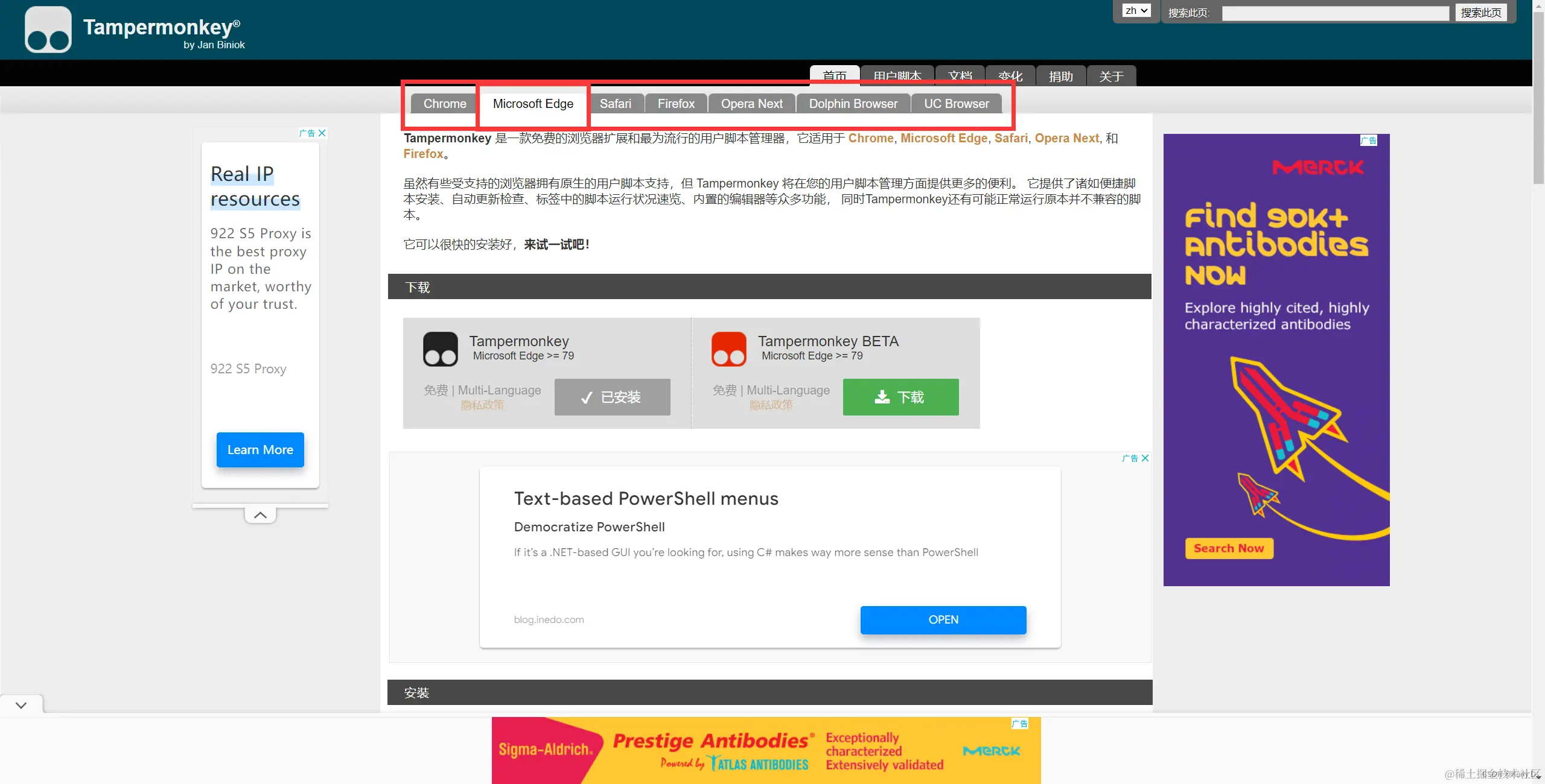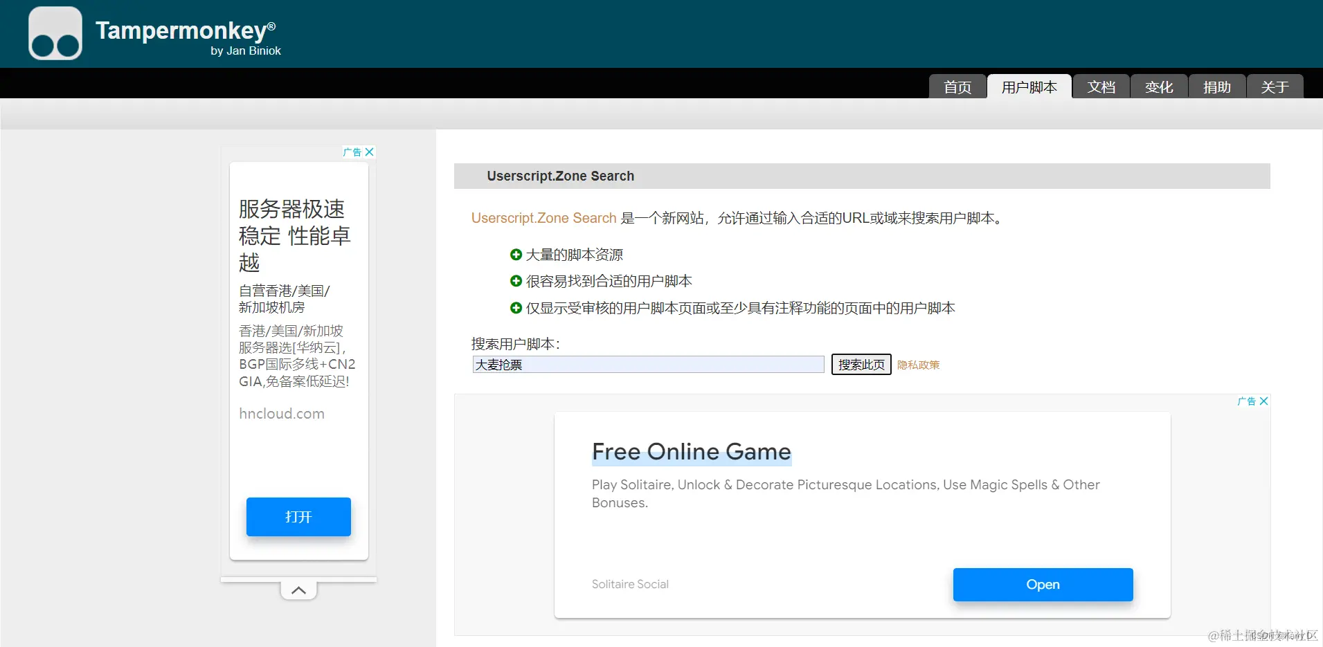 Tampermonkey(油猴)是一款免费的浏览器扩展和最为流行的用户脚本管理器,它适用于 Chrome, Microsoft Edge, Safari, Opera Next, 和 Firefox。虽然有些受支持的浏览器拥有原生的用户脚本支持,但 Tampermonkey 将在您的用户脚本管理方面提供更多的便利。 它提供了诸如便捷脚本安装、自动更新检查、标签中的脚本运行状况速览、内置的编辑器等众多功能, 同时Tampermonkey还有可能正常运行原本并不兼容的脚本。