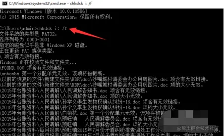 3、从打开的“命令提示符”窗口中,输“chkdsk i: /f”并按回车键以进行修复操作。