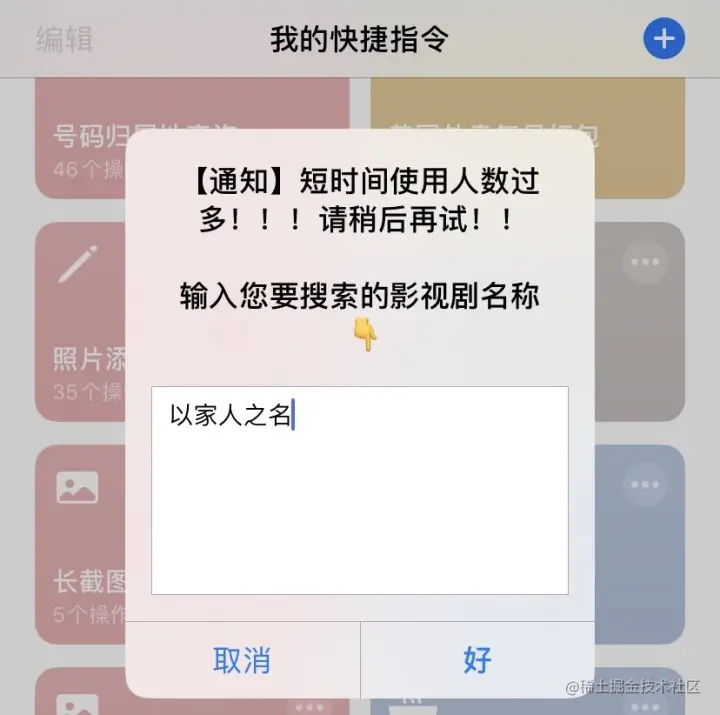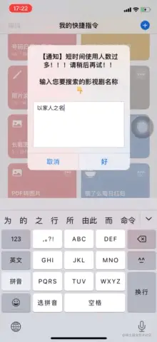 最后在快捷指令中点击Sky影视,输入想看的影视即可观看啦!