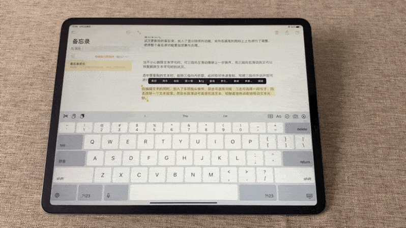 相信很多人使用平板打字的过程中,会遇到需要移动光标在原本的文字中插入或清除字句。而一般人的操作方式肯定是去点触文字中某个字句段落,或长按字句段落移动光标位置吧?其实还有一种更便捷的方式,能够更快速,更准确的更改光标位置哦。