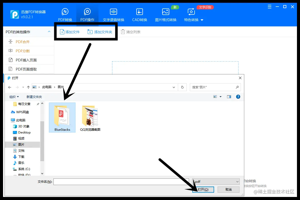 步骤二:点击PDF压缩后,在右侧点击“添加文件”or“添加文件夹”,在弹出的窗口中选中需要压缩的PDF文件,然后点击“打开”按钮将其添加进来。