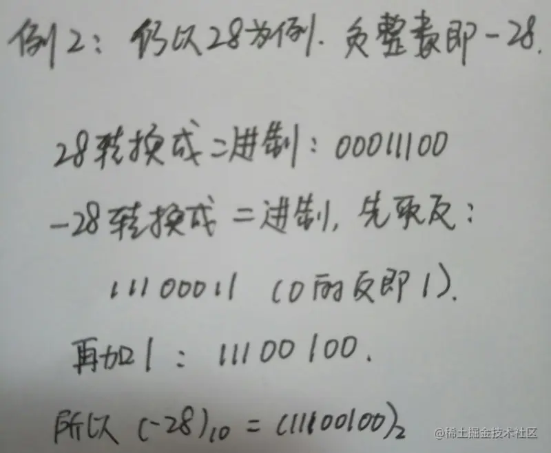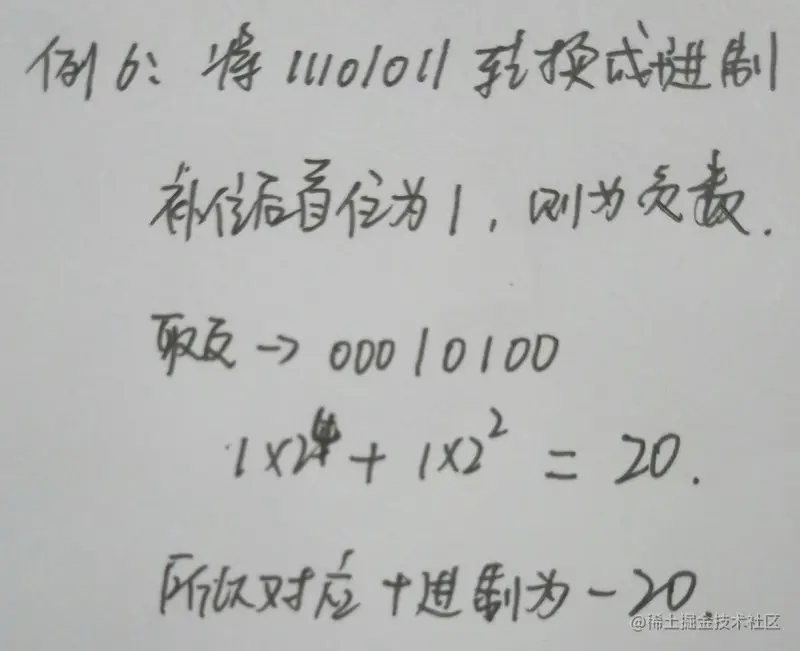 方法:先将对应的正整数转换成二进制后,对二进制取反,然后对结果再加1。