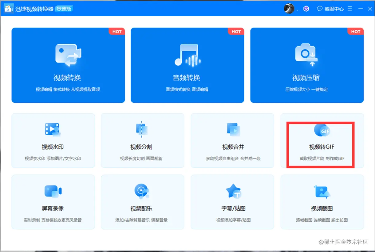 第一步 打开软件选择 “视频转GIF” 的选项,选择好之后,点击上传需要生成动图的视频文件。