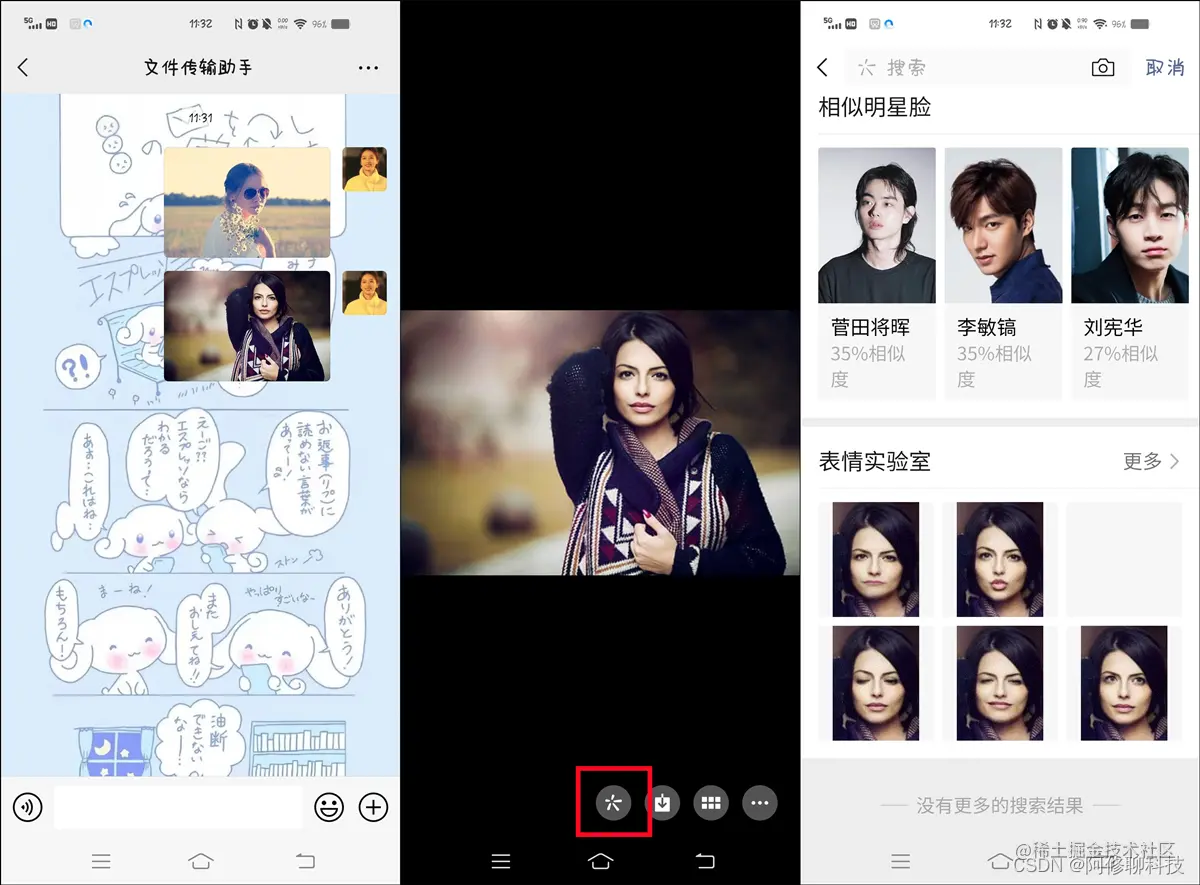 我们将人像的图片发送到手机微信里面的文件传输助手,然后点击打开图片。在图片下方显示的第一个按钮,点击选择,系统会对图片进行识别。往下滑动我们可以看到系统生成的各种动态表情,点击保存到本地相册即可。这个方法·适用于生成人物的动图。