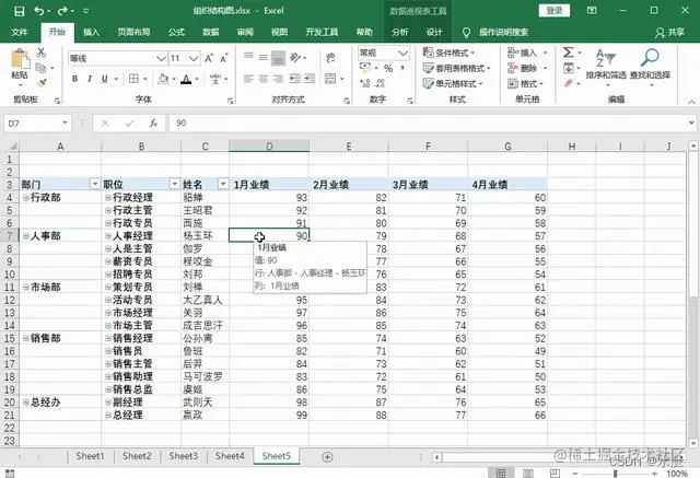 7、最后我们在数据源中添加数据的时候,自己需要回到透视表中,鼠标右击选择【刷新】,可以看到数据也会被刷新进来,而且可以实现自动合并的效果。
