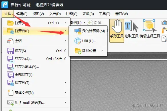 1.打开运行迅捷PDF编辑器,在编辑器中打开需要修改的PDF文件。