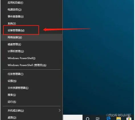1、插入U盘,同时按下win10系统的【win+X】组合键,选择【设备管理器】打开。