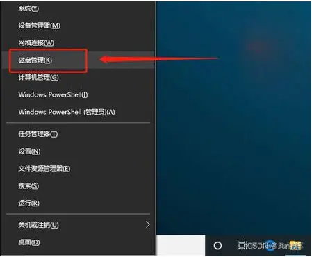 1、插入U盘,同时按下【win+X】组合键,选中【磁盘管理】打开。