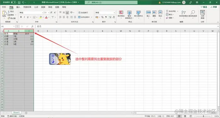 步骤1.打开excel表格后,通过鼠标选中你需要找出重复项的部分,建议直接选中整列或者整行,避免遗漏;