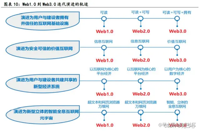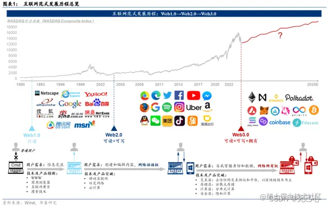 华鑫证券认为,Web1.0是过去,解决用户浏览内容的问题,Web2.0是现在,解决用户创造内容的问题,Web3.0是未来,将解决用户信息安全和内容所有权的问题。