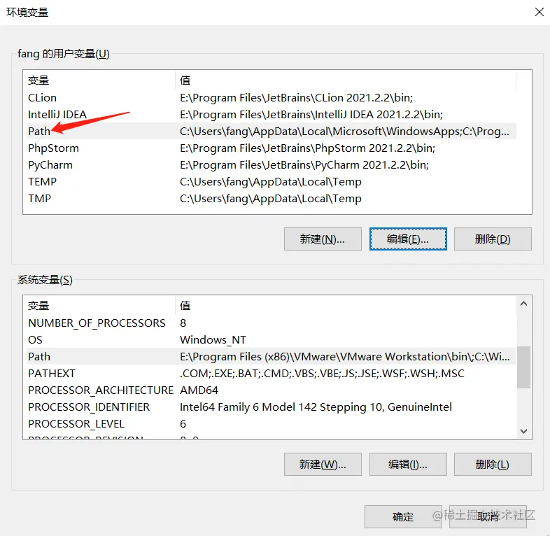 双击Path,将刚才复制的路径粘贴进去(Ctrl V)
