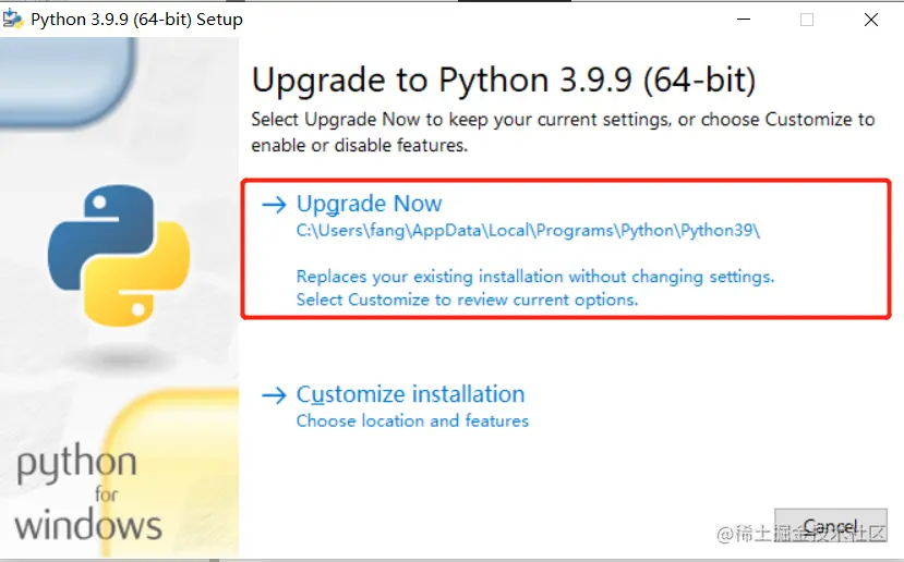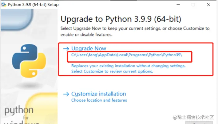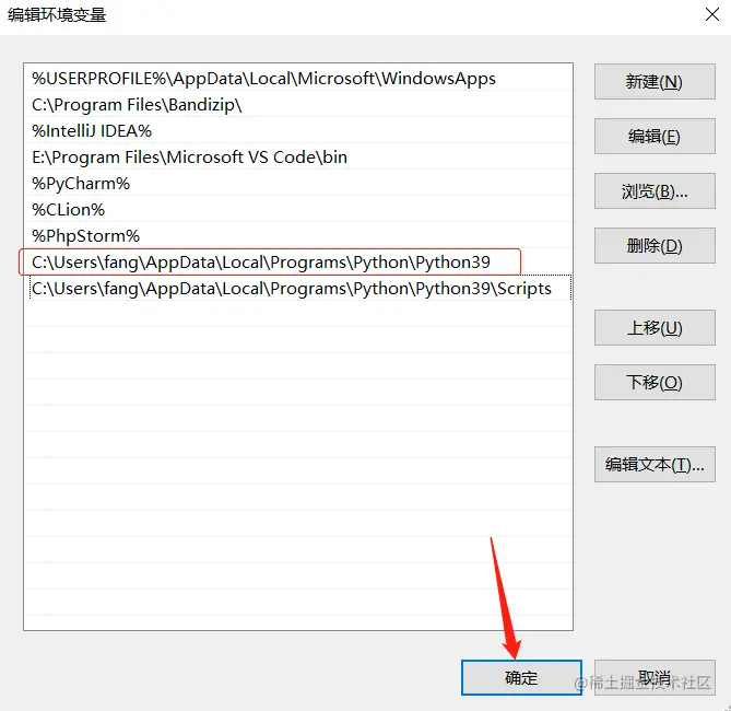 这个是默认安装路径:C:\Users\fang\AppData\Local\Programs\Python\Python39 每个人都不一样的,要记住自己的安装路径,待会配置环境变量的时候要用到