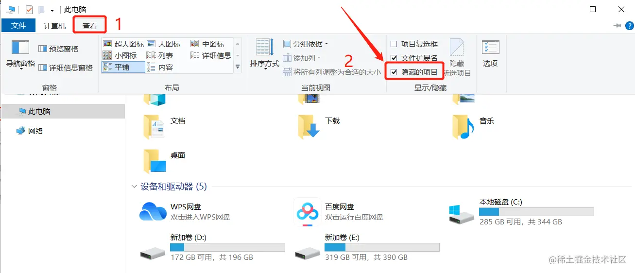 1.先把点击查看,把“隐藏的项目”勾上