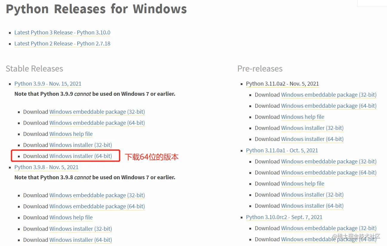 2.选择下载的版本是3.9.9,双击下载,注意:最新的Python 3.9.9,要求是windows 7以上才行