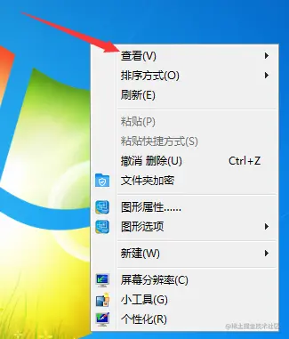 1、在桌面空白位置单击鼠标右键,选择【查看】。